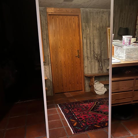 Veggspeil fra 80-tallet i smal og tidløs utforming. Passer fint i gang, soverom eller som et dekorativt element i stue. Enkelt uttrykk som gjør det lett å kombinere med både moderne og retro interiør.