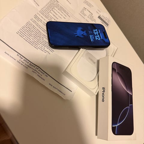 Selger en iPhone 16 Pro 128GB i fargen Desert Titanium. Telefonen fungerer utmerket, men det er en liten ripe som kan sees på skjermen. Det er også en bitteliten skade på siden av kameraet, men dette påvirker ikke kameraet eller bildekvaliteten på noen måte.