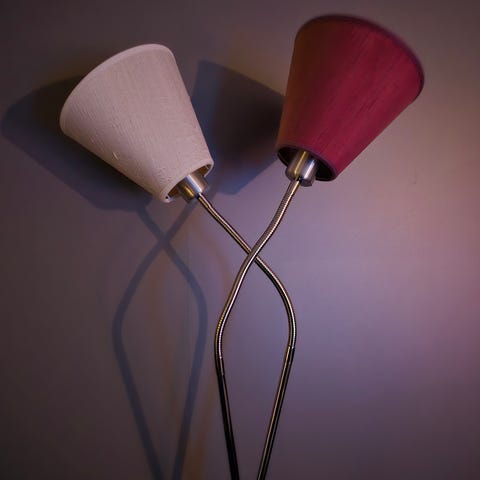 Stålampe i sort, med glasskuppel, høyde 160 cm. Selges kr 150;