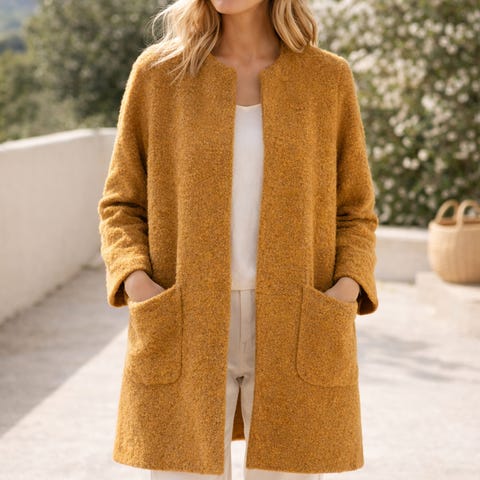 Zara kåpe for dame i størrelse S. Kåpen er beige og laget i polyester. Modellen har krage, slag, knapper i front og belte i livet. Lengden går til litt ned på låret, med rette ermer og enkel ryggdetalj med kappe. Egnet som ytterjakke i overgangssesonger og milde dager. Aldri brukt, kun prøvd på