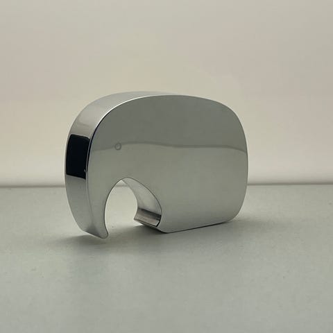 Dette er en Georg Jensen Elephant flaskeåpner (også kalt Øllefant), designet av Jørgen Møller og hans barnebarn i 1987.