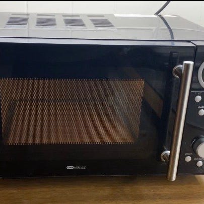 Logik mikrobølgeovn i stålutførelse. Frittstående modell med front i sort glass og kontrollpanel på høyre side med dreiehjul og knapper. Passer til oppvarming og tining av mat på kjøkken, hybel eller kontor. Standard nettkabel med jordet støpsel for tilkobling til vanlig stikkontakt.