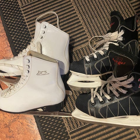 4 par eldre ishockey-skøyter til barn i ulik størrelse. Se bildene for eksakt størrelse.