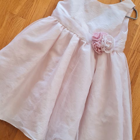 Godt brukt kjole med stilig motiv. Noen synlig dradde tråder i tyll. Lyserosa.