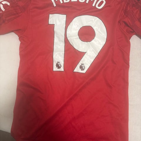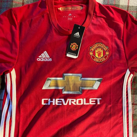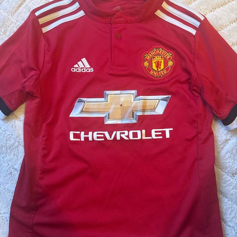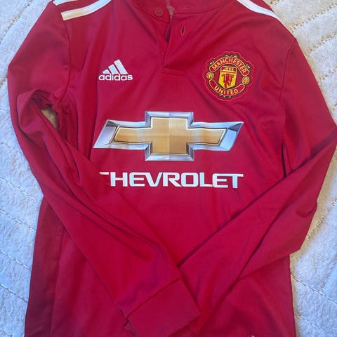 Adidas Manchester United fotballdrakt i unisex størrelse S. Drakten er i klassisk rød farge med svarte detaljer på skuldre og sider. Klubblogo og Adidas-logo er plassert på brystet, og fronten har trykk av hovedsponsor. Kortermet modell med rund hals. Egnet til fotball og annen fysisk aktivitet, eller som supportereffekt for Manchester United-fans. Materialet er lett og pustende syntetisk stoff tilpasset sportsbruk. Fikk ikke byttet før byttetid gikk ut.
