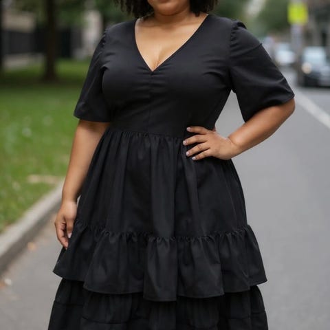 Shein Curve er et merke spesielt designet for kvinner med former, klærne har dermed ekstra vidde over bryst, midje og hofter. Se bilde for størrelsestabell.