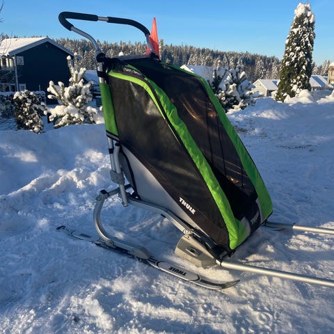Sykkelhenger/pulk til to barn selges høystbydende. Enkel å betjene
