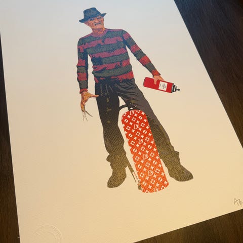 Selger et sterkt og visuelt markant pop art-kunstverk av Death NYC.