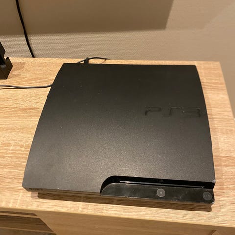 Sony Playstation 3 spillkonsoll i svart utførelse. Konsollen har innebygd Blu-ray-spiller og støtter avspilling av spill på fysiske plater samt ulike medier via USB og nettverk. På baksiden finnes tilkoblinger for strøm, HDMI, nettverk og andre standard porter for denne modellen. Egnet for bruk med kompatible Playstation 3-spill og som mediesenter til TV eller skjerm som støtter HDMI-tilkobling.
