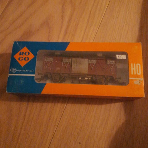 Modelljernbane vogn med eske.