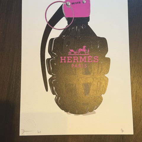 Selger et lekent og moderne pop art-kunstverk av Death NYC.