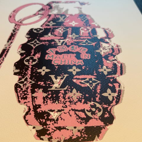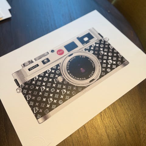 kunst, bilde, maleri, veggbilde, veggkunst, moderne kunst, pop art, street art, urban kunst, Banksy, Banksy-stil, kamera, polaroid, retro, popkultur, Louis Vuitton-stil, LV-stil, luksusinspirert, leica kamera, design, interiør, plakat, poster, trykk, samtidskunst, galleri, kunst til salgs, statement art.