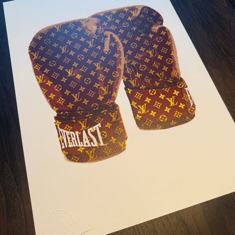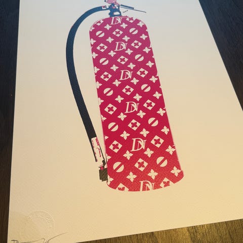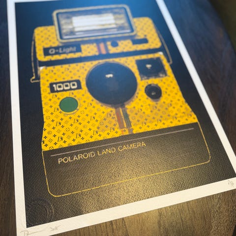 kunst, bilde, maleri, veggbilde, veggkunst, moderne kunst, pop art, street art, urban kunst, Banksy, Banksy-stil, Leica, kamera, foto, fotografi, monster, popkultur, Louis Vuitton-stil, LV-stil, luksusinspirert, design, interiør, plakat, poster, trykk, samtidskunst, galleri, kunst til salgs, statement art.