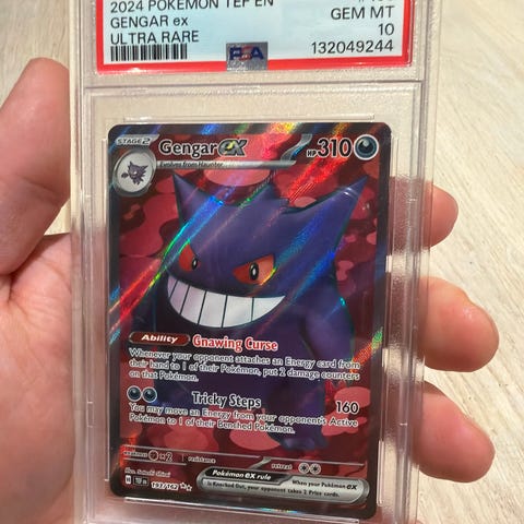 Pokémon Umbreon VMAX samlekort fra Sword & Shield-serien. Kortet er innkapslet og gradert PSA 10, som vises på bildene. Motivet viser Umbreon VMAX med illustrasjon i fullart-design. Standard Pokémon TCG-størrelse, levert i PSA-plastkapsel med etikett og serienummer øverst. Egnet for samlere av Pokémon-kort og for oppbevaring i graderte kortesker eller utstillingsrammer.