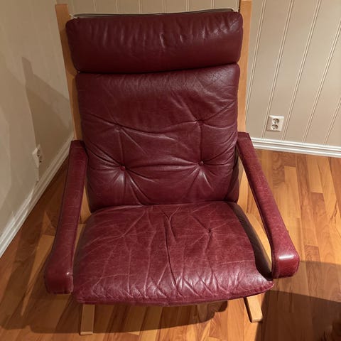 En stol av svært høy kvalitet for avslapning, men ikke egnet for arbeid ved et skrivebord, da stolen er ganske lav.