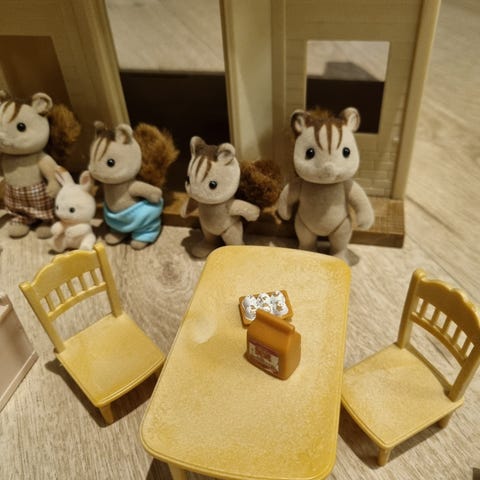 Møblene er i god stand for sin alder, men normal bruksslitasje må påregnes. Perfekt for samlere eller som leker.