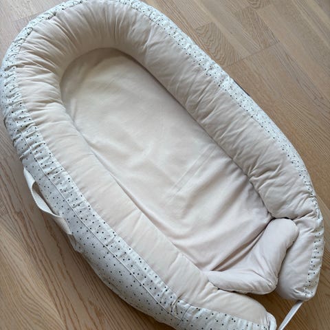 Lite brukt nest, lagt oppi moonboon med saueskinn oppi