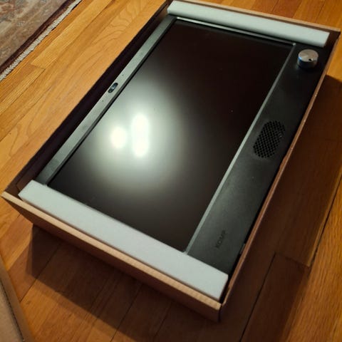 Enheten er designet for å være brukervennlig for eldre, med en stor bryter for enkel betjening og en ikke-berøringsskjerm som viser innhold tydelig.