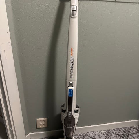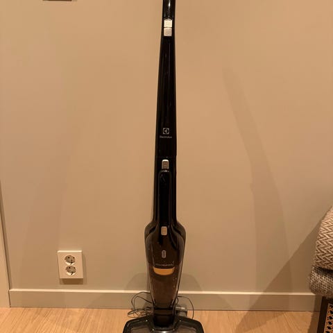 Støvsugeren er i god stand, men bruksmerker forekommer. Gått lett over, men litt støv følger med.