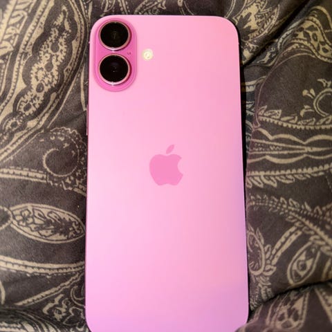 Apple iPhone 16 mobiltelefon med 128 GB lagringskapasitet i rosa farge.