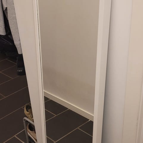 Speil med hvit ramme. 150 cm lang, 47 cm bred.