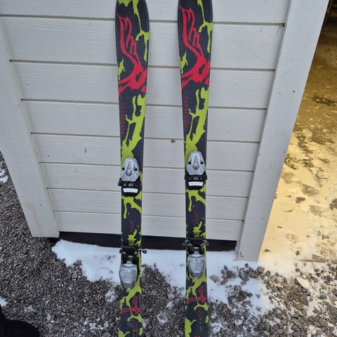 Twintip ski med lengde 99 cm i hvit farge. Skiene har geometri 101/85/92 og svingradius 11 m. Leveres med monterte bindinger som vist på bildene.