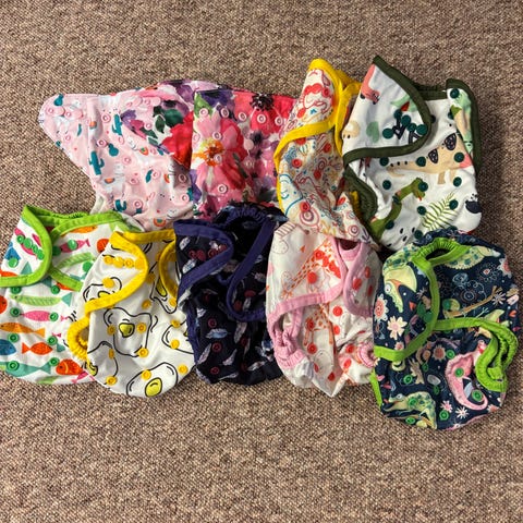 1 bleie (med sushi mønster) har litt ødelagt PUL men funker bra - kan følge gratis