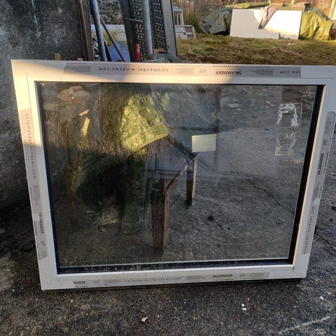 Stort kvadratisk vindusglass med ramme. Egnet som fastkarmvindu eller erstatningsglass i tilsvarende størrelse. Passer til bruk i bolig, hytte eller andre bygg der man ønsker et stort glassfelt. Nøytral utførelse som kan tilpasses eksisterende vegg og listverk etter behov.