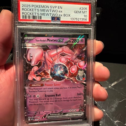 Pokémon Team Rocket’s Murkrow samle kort, illustrasjon rare-utgave. Kortet er innkapslet og gradert av PSA med karakteren GEM MT 10. Serien er merket «2025 Pokémon Dri En» og kortnummeret er #200. Standard Pokémon-bakside. Egnet for samlere av gradert Pokémon-kort og for oppbevaring i eksisterende PSA-samling.