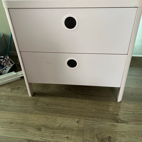 Kids Concept Star kommode for barn i gul farge. Egnet til oppbevaring av leker, bøker eller annet barneromsutstyr. Passer på barnerom eller lekerom der det er behov for ekstra oppbevaringsplass. Kommoden har et slitasjemerke på ene skapet(se bilde 2) og litt slitasjemerker på høyre side (se bilde 3). Kjøpt på jollyroom for 879,-