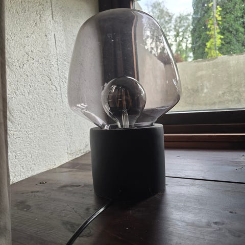 Nydelig sort bordlampe med glasskuppel