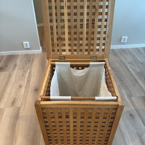 Helt ny ubrukt skittentøyskurv selges da den ikke fikk plass på badet mitt. Veldig funksjonell med 3 deling på innsiden!
