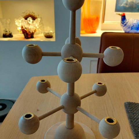 Design House Stockholm lysestake i tre og grå farge selges. Lysestaken har plass til syv stearinlys, med justerbar form - for eksempel om man vil ha tre lys på en side og fire lys på den andre siden. Passer for eksempel på bord, hylle eller vinduskarm i stue eller spisestue.