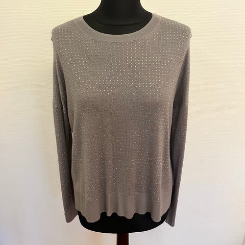 Roxy genser for dame i størrelse XS. Genseren er grå og laget i bomull. Den har rund hals, lange ermer og et mønstret parti øverst på brystet samt diskret mønsterkant nederst. Passer til hverdagsbruk alene eller lagvis under jakke eller yttertøy. vintage y2k retro low