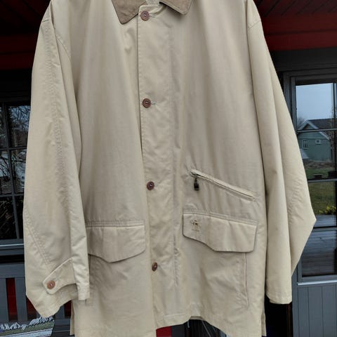 Moncler Claudel jakke for herre. Jakken er beige og laget i slitesterk materiale. Den har dobbeltspent knappelukking i front og en innsats med glidelås på innsiden som gir ekstra isolasjon. Ytterstoffet er glatt, mens innsiden har vatterte felt. Ermene har knappedetaljer ved mansjettene. Kjøpt for en del år siden, men nesten ubrukt.