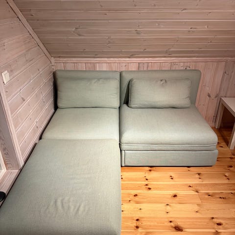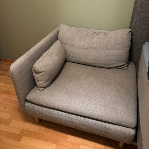 Trekk til Söderhamn sjeselong. Komplett som på bild men uten den lille puten. På en av langsidene er det blitt noen hull etter frakt av sofa. Se bilder. Og merke etter sollys på baksidan av rygg. Se bilde. Tror det er fargen Fridtuna mørkegrå som ikke selges lenger. Ellers hel og fin og nyvasket.
