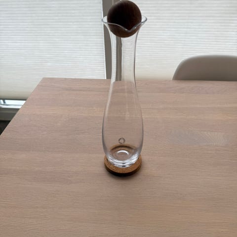 Fra nett: De elegante olje- og eddikflaskene Nature kommer fra det svenske varemerket Sagaform. Flaskene er laget i munnblåst glass og har en dekorativ Nature kork i eik. Bruk flaskene til dine favorittoljer eller eddik og sett dem i kjøkkenet eller på spisebordet i forbindelse med måltider. Kombiner gjerne flaskene med andre matchende deler fra Nature-serien for å skape en enhetlig stil i hjemmet ditt.