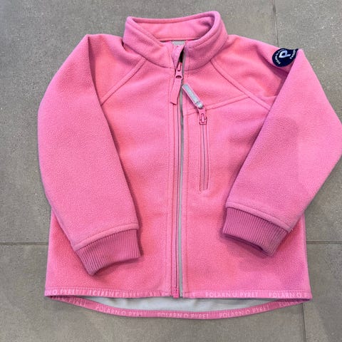 Polarn O. Pyret vindfleecejakke for barn i størrelse 98. Jakken er i lilla fleece og er unisex. Den har glidelås i front, høy krage og en brystlomme med glidelås. Mykt fleecemateriale som egner seg godt som mellomlag eller lett ytterlag på kjølige dager.