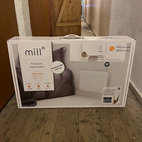 Mill konveksjonsovn i hvit farge. Frittstående panelovn som egner seg til oppvarming av innendørs rom. Leveres i original emballasje slik den fremstår på bildet. Strømtilkobling via ledning på siden av ovnen. Egnet for bruk på gulv i for eksempel stue, soverom eller kontor.