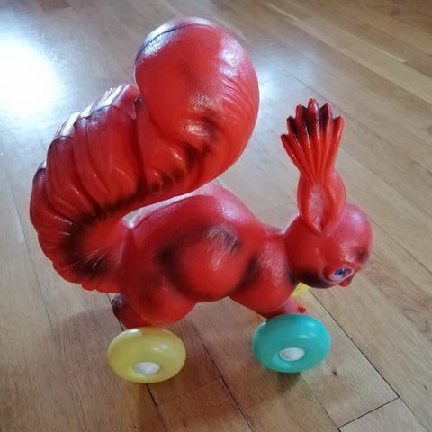 Selger en søt, eldre spilledåse med motiv av teddybjørner. Når man åpner lokket (og trekker den opp på baksiden), spiller den en melodi mens den lille bjørnen i midten snurrer rundt.