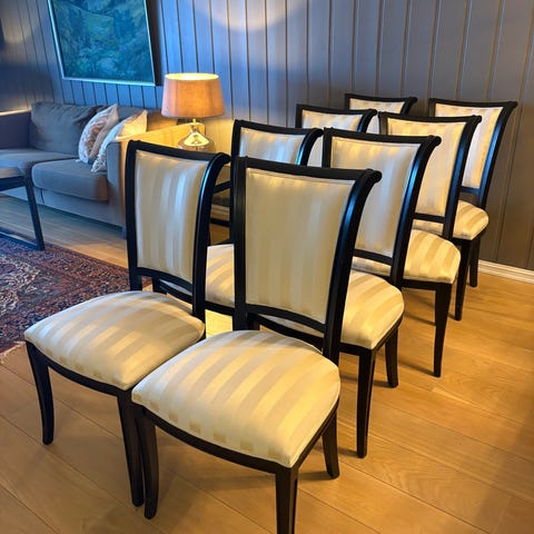 To i fargen brun/beige og fire stk i offwhite. Noen må limes i krysset mellom bena for å få de helt stødig. Må hentes på Steinkjer