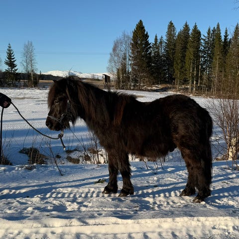 Toårs hingst e. Odals Viking og u. Vårvilja. Begge foreldre en gode brukshester med godt gemytt. Vår Viking er veldig tillitsfull og glad i mennesker. Liker å bli stelt og trent. Vi har begynt å leie han rundt i nærmiljøet, gå med sele og trekkliner. Har dratt dekk et par ganger. Må selge han pga for lite tid til han siden jeg også eier og trener faren. Vår Viking blir nok en god hest for sporten, han har god framdrift, blir stor sannsynligvis og er ikke bakredd. Vurderer å kastrere han siden det holder med en hingst på gården. Prisen vil stige etter kastrering.