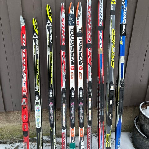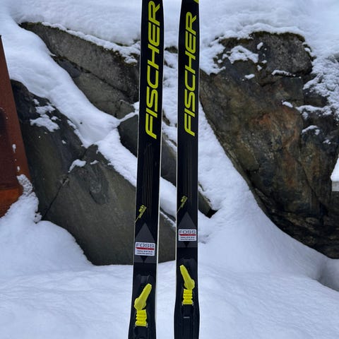 Skiene er kjøpt nye på sportsbutikken Energihuset på Nesodden, og brukt noen få ganger innen de ble for korte. Noen uskyldige bruksmerker, men kjempefine ski!