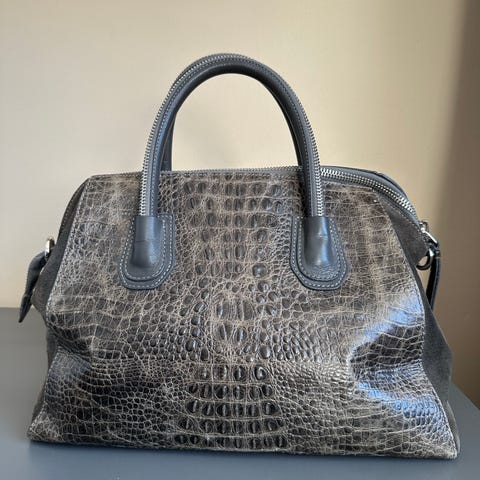 Veldig fin veske/ totebag, men fortjener ny eier så den blir mer brukt:-) Pent brukt, men allikevel litt slitasje på skinnet. Du ser av bildene at skinnet er litt "matt" noen steder.