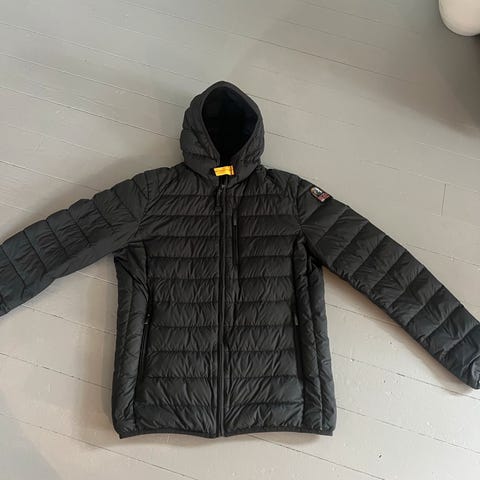 Lett og varm boblejakke i fin grønnfarge. Den har et lite hull på høyre arm, men det er reparert med en lapp (se bilde).