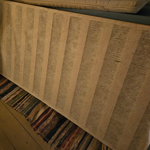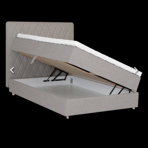Seng med uttrekkbar skuffer under, med madrass og overmadrass.