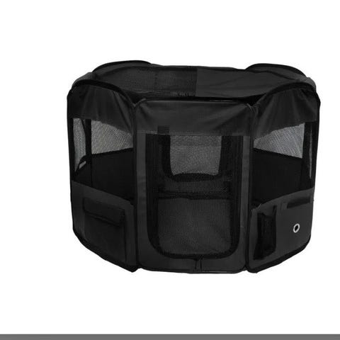 Sherpa transportbag til kjæledyr i svart tekstil. Vesken har nettingpaneler på sidene for lufting og innsyn, samt glidelåsåpning på toppen og i front. Den har bærehåndtak med polstret grep. Bunnen har føtter for bedre stabilitet og beskyttelse mot underlaget. Egnet for transport av mindre kjæledyr, for eksempel katt eller liten hund, i bil, kollektivtransport eller på fly reiser.