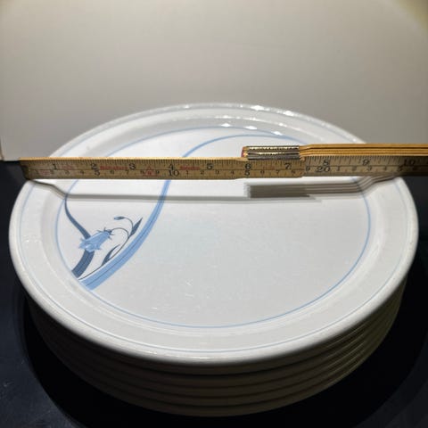 8,7cm i diameter. Asjettenes mål: 15cm i diameter