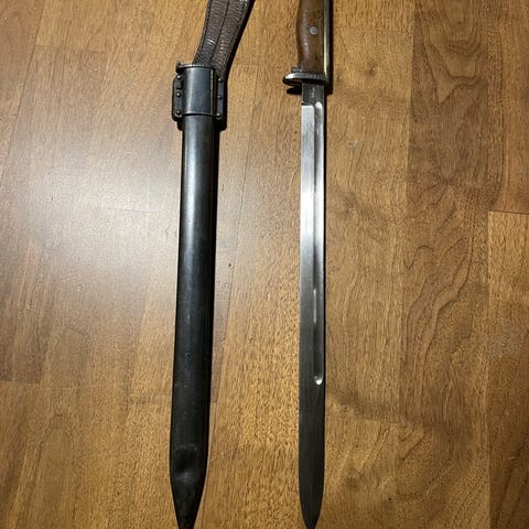 Pen kragbajonett med frog. Utløser til frogen er defekt og kan derfor ikke tas av.