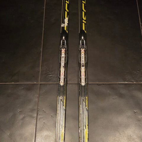 Skiene er godt brukt, men tåler mange sesonger til i skisporet.